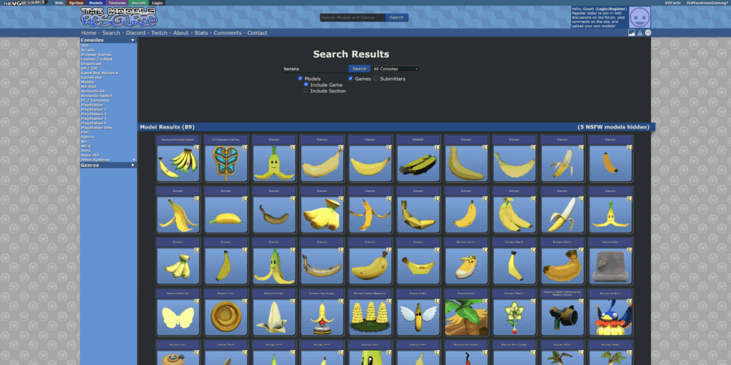 The next model we’ll need for our animation is a banana peel. Luckily, turns out there are tons of bananas being used in video games!