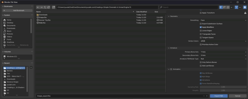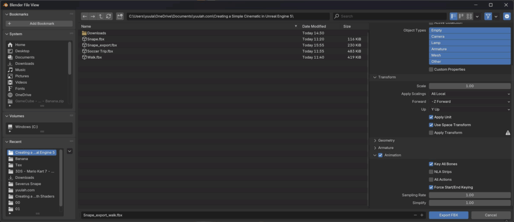 In order to get our animated character inside UE, we’ll: