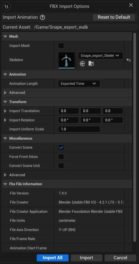 Next, let’s import our walk animation FBX.
