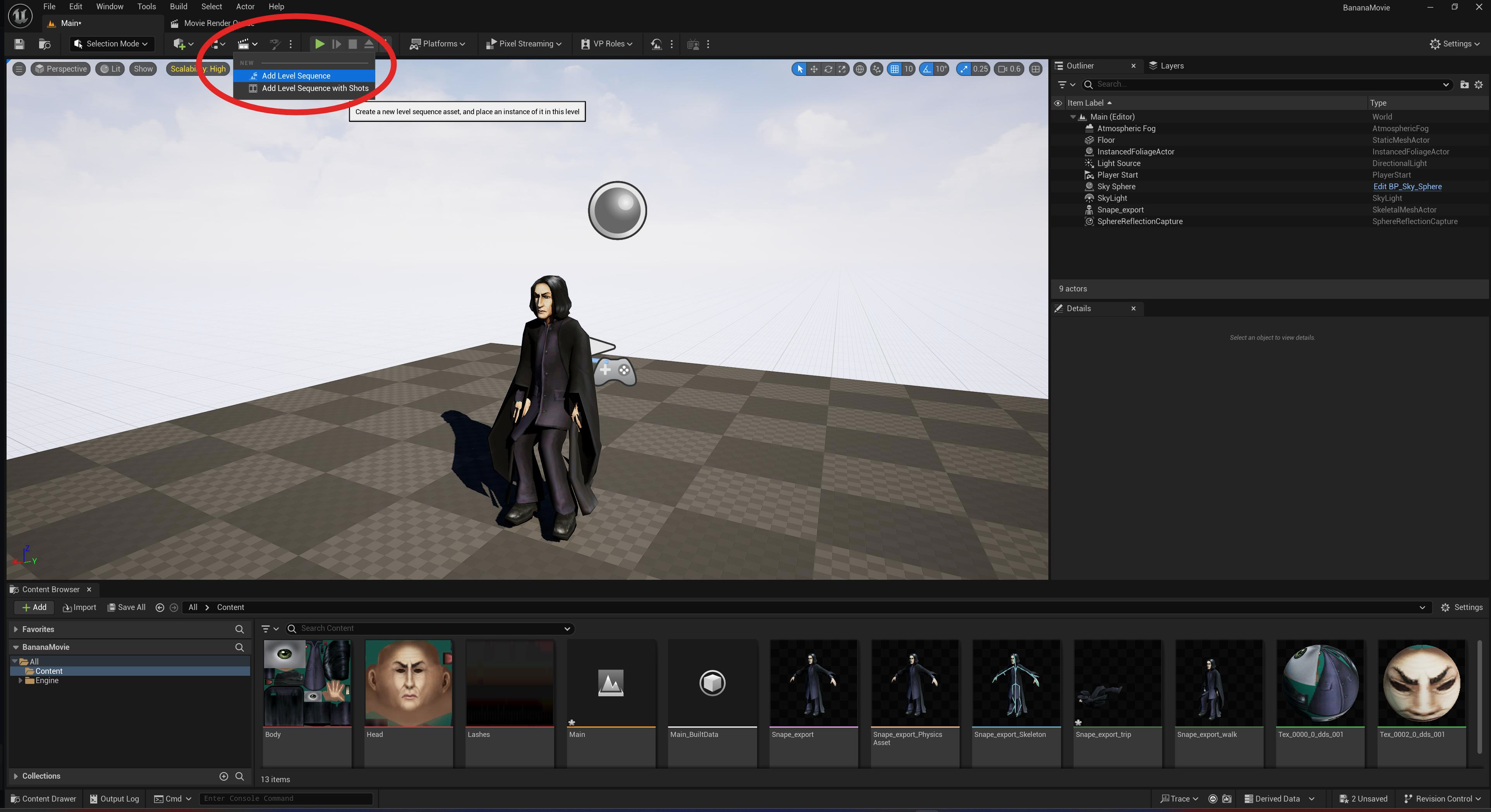 Creating a level sequence