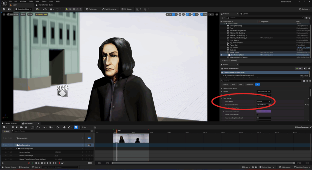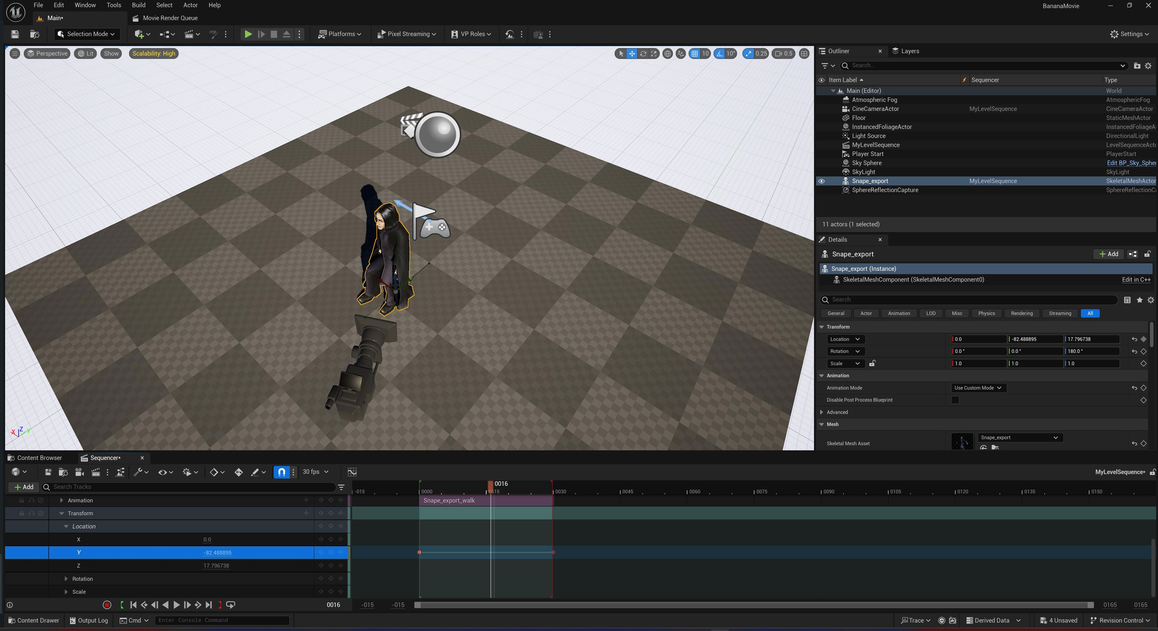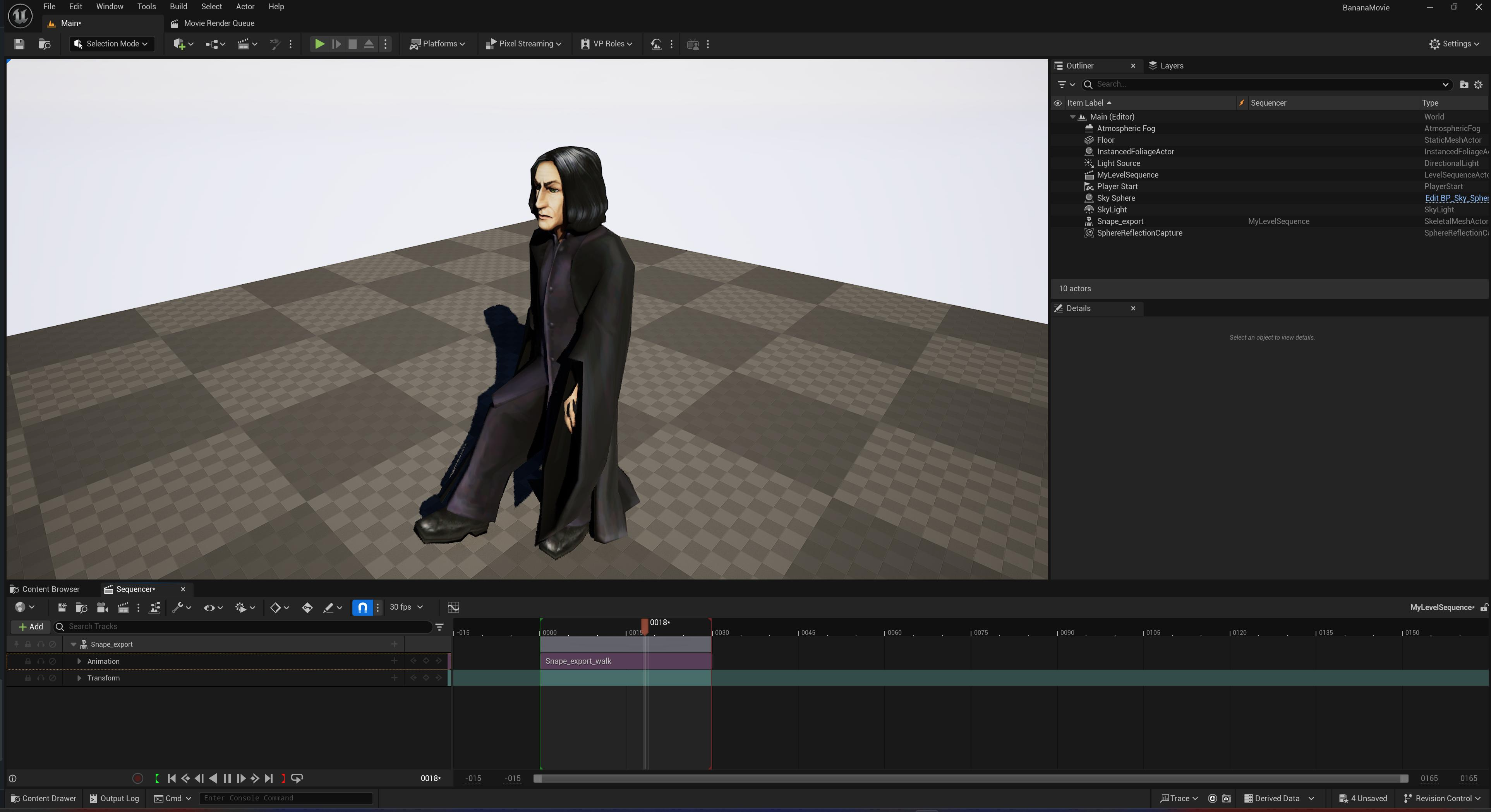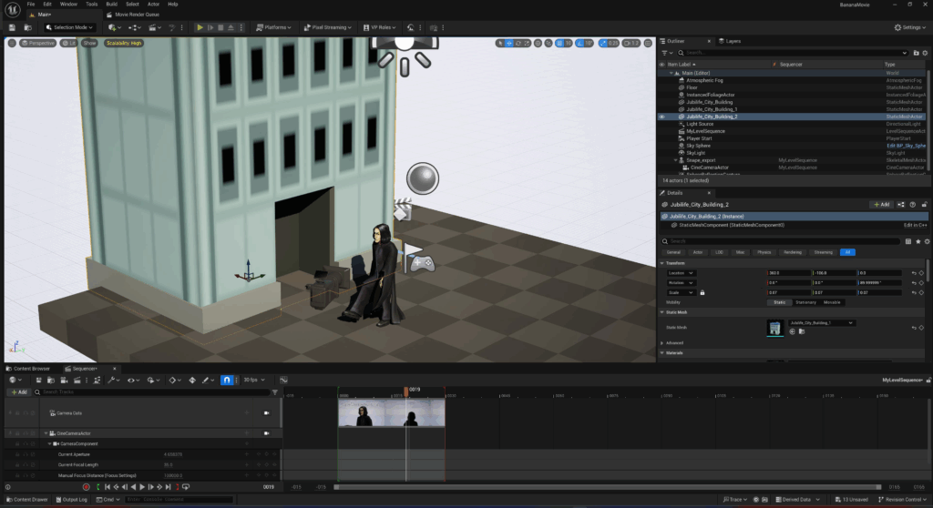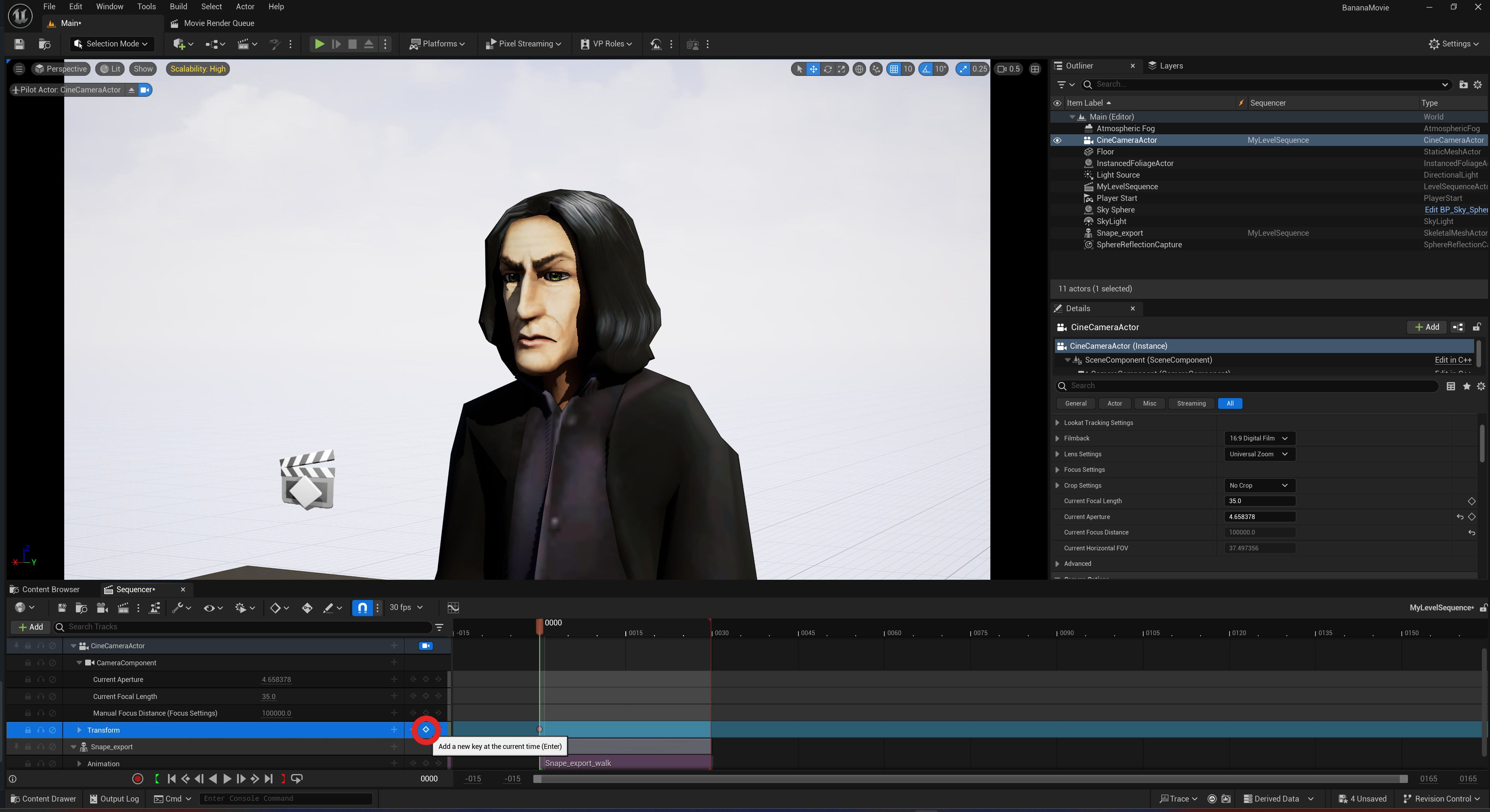 With Snape now walking, let’s create the first shot of our cinematic.