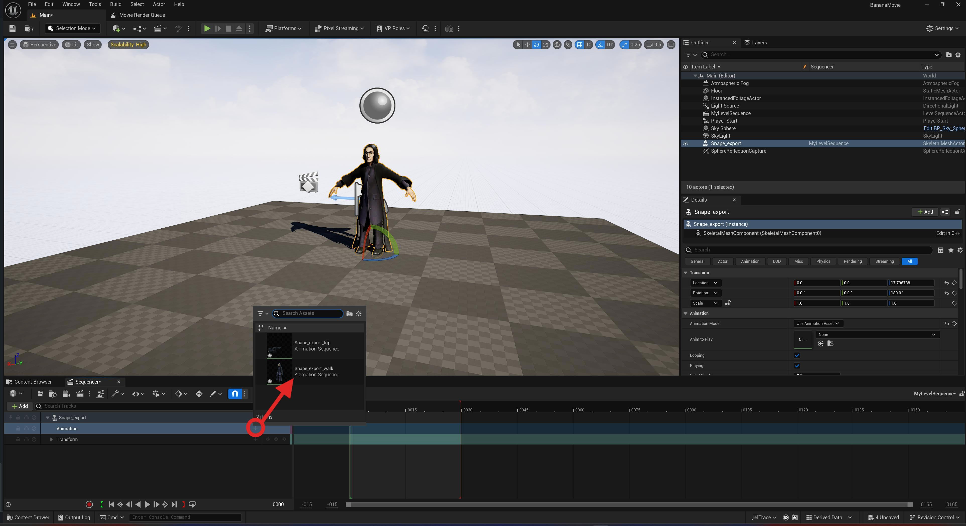 With Snape and his animations in place, it’s time to start creating our actual cinematic!