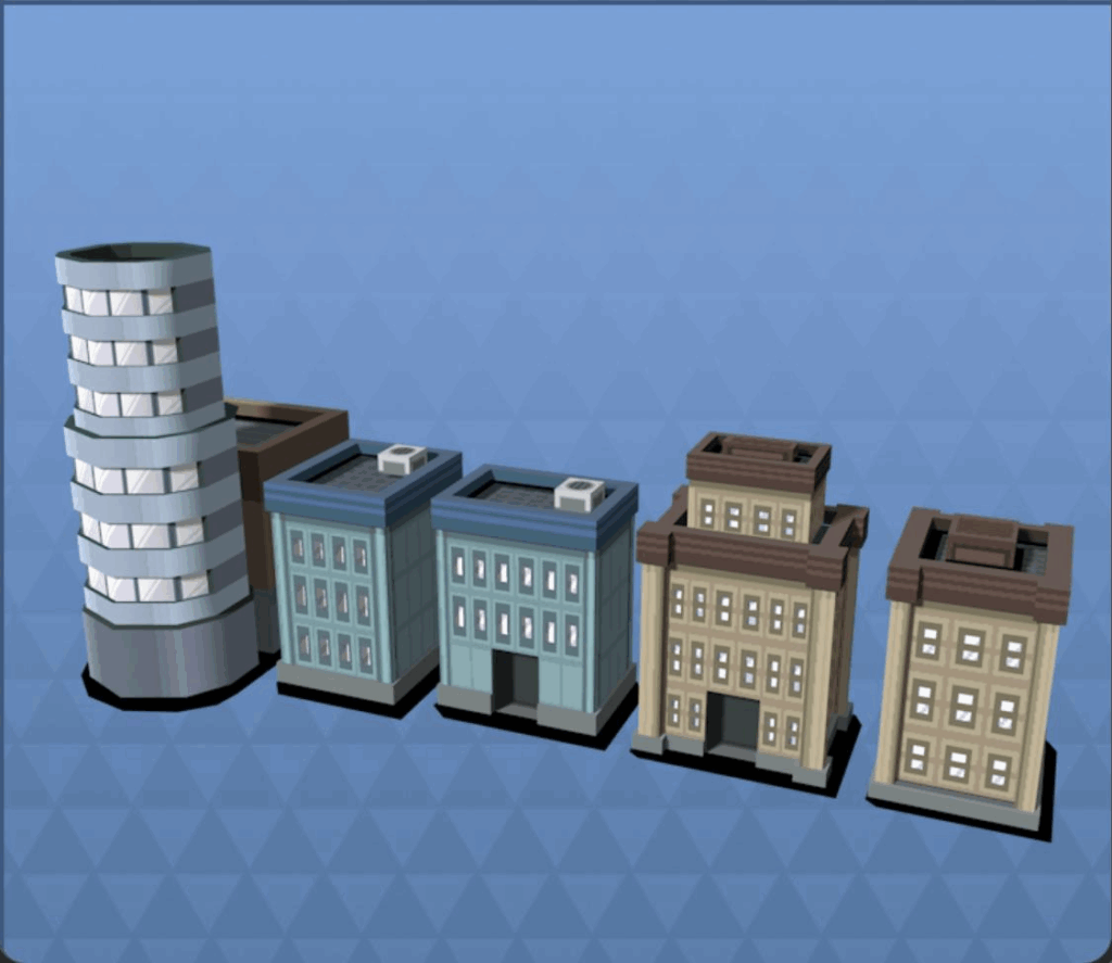 To create a nice city environment for the background, I started creating a simple cityscape using these Jubilife city buildings from Pokémon Platinum.