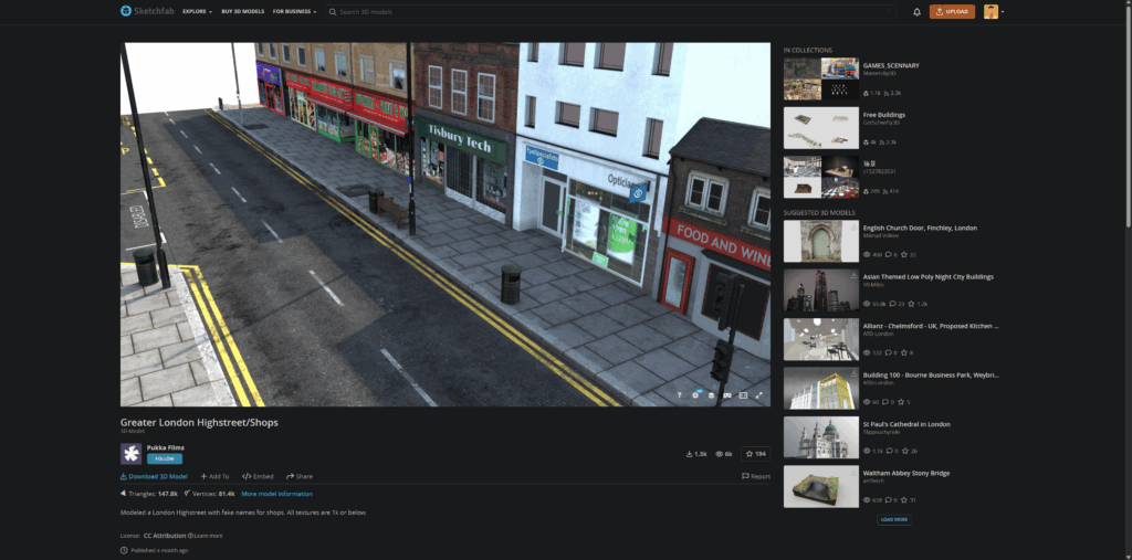 The Jubilife city buildings aren’t looking so great, so I did some asset-hunting and found this awesome London street asset by Sketchfab user Pukka Films!
