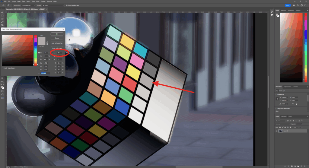 Our L value was 70, meaning our image is a bit overexposed.
