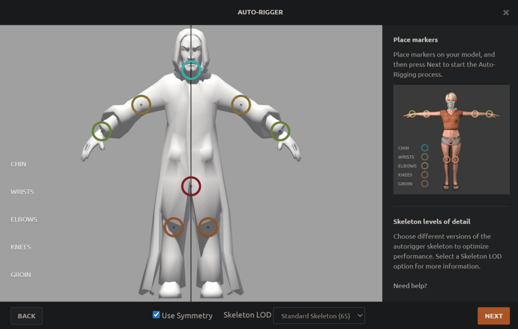 Export Professor Snape as an FBX, and then import it into Mixamo.